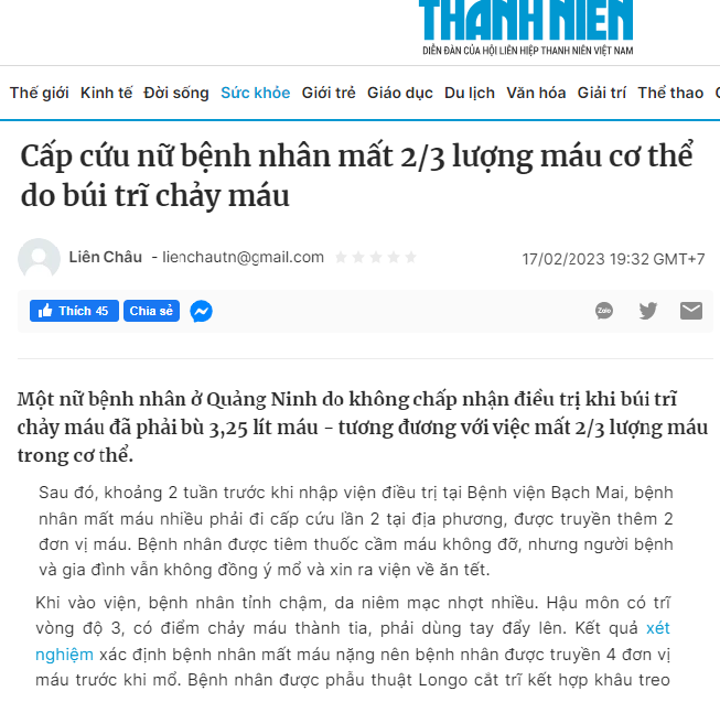 • Anh Minh Đức (Long Biên) hỏi: “Làm nhân viên văn phòng gần chục năm nay, công việc hàng ngày ngải ngồi xử lý tài liệu nhiều khiến. Gần đây tôi thấy vùng hậu môn thường xuyên lòi cục thịt thừa, việc đi đại tiện từ đó cũng gặp khó khăn hơn. Vậy không biết đâu là bị gì hả bác sĩ?”
